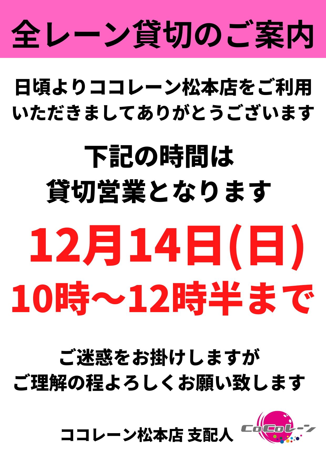 全レーン貸切のお知らせ