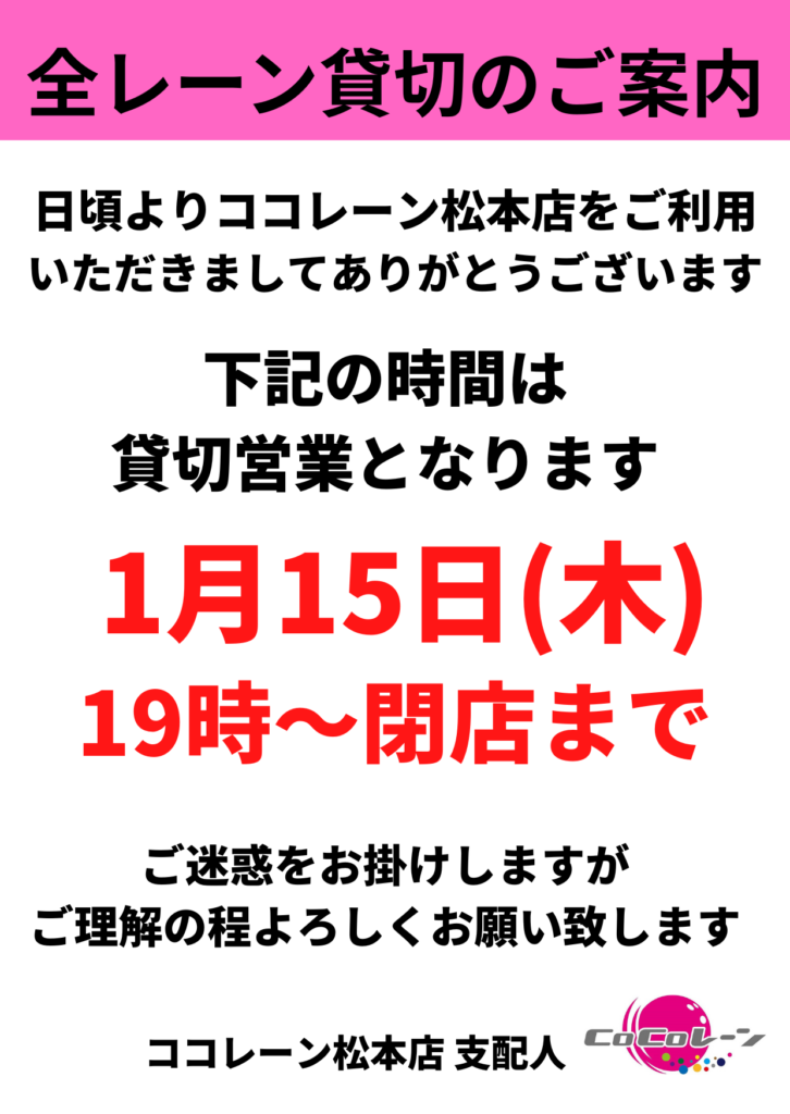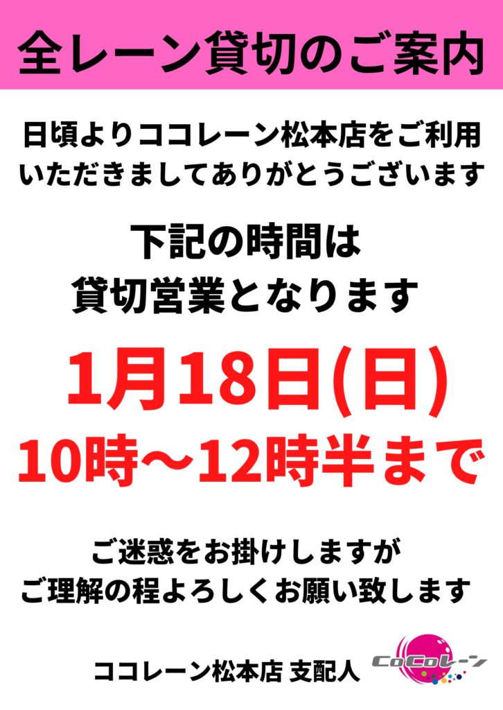 2026年1月貸切営業のお知らせ